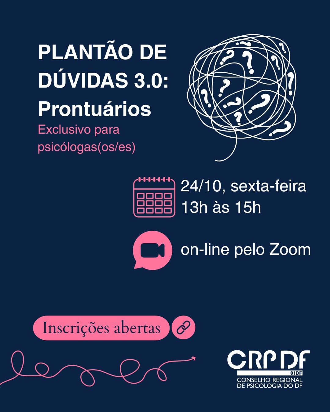 Participe do “Plantão de Dúvidas 3.0 - Prontuários”, um projeto do Conselho Regional de Psicologia do Distrito Federal (CRP 01/DF):