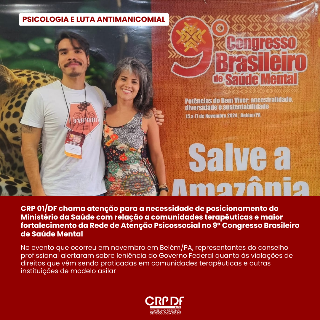O Conselho Regional de Psicologia do Distrito Federal (CRP 01/DF) esteve presente no 9º Congresso Brasileiro de Saúde Mental, organizado pela Associação Brasileira de Saúde Mental (ABRASME) de 15 a 17 de novembro na cidade de Belém, no Pará.