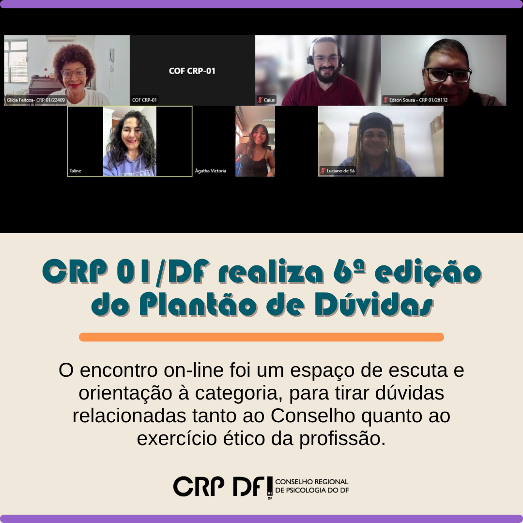 Realizamos, na última sexta-feira, a 6ª edição do Plantão de Dúvidas on-line, via Zoom, conduzido pela Comissão de Orientação e Fiscalização do CRP 01/DF.