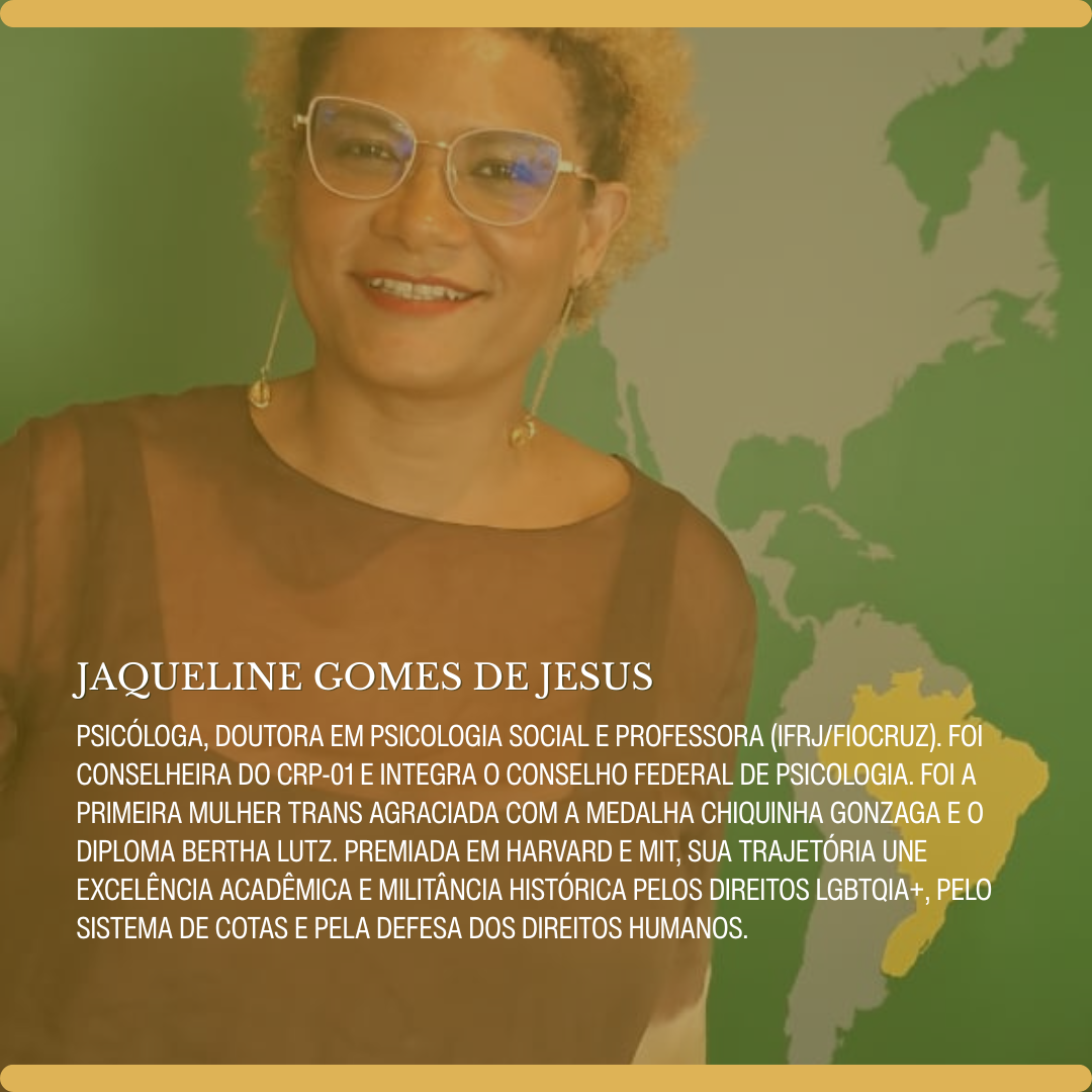 Conheça as mulheres extraordinárias que estarão conosco neste encontro de vozes e resistências abaixo. Juntas, elas tecem reflexões e caminhos sobre a luta pelo desencarceramento e pela causa antimanicomial, a defesa inegociável da infância, a potência da representatividade trans, o enfrentamento à violência doméstica, os desafios e compromissos da gestão da Psicologia no DF. Um debate que é, antes de tudo, território de coragem, cuidado e transformação.