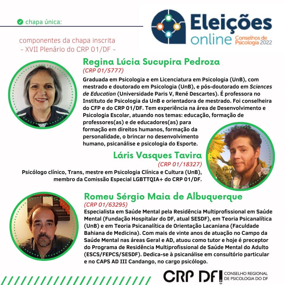 Componentes da chapa inscrita - XVII Plenário do CRP 01/DF: