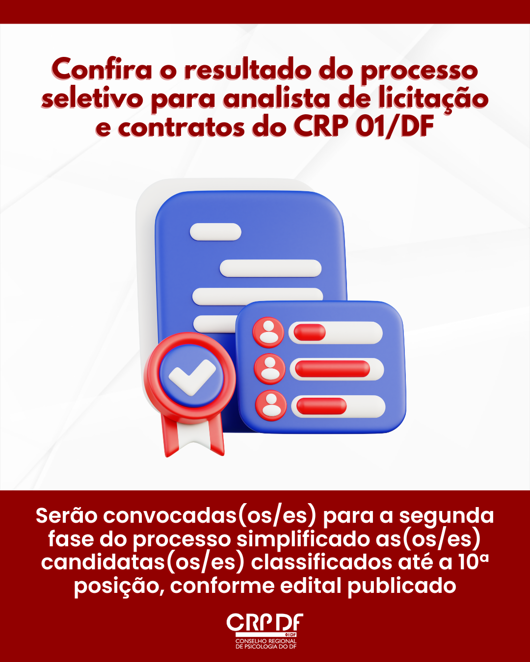 Confira o resultado do processo seletivo para analista de licitação e contratos do CRP 01/DF
