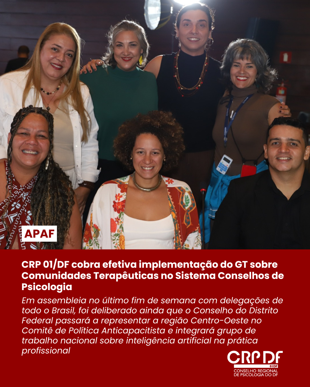 Em assembleia no último fim de semana com delegações de todo o Brasil, foi deliberado ainda que o Conselho do Distrito Federal passará a representar a região Centro-Oeste no Comitê de Política Anticapacitista e integrará grupo de trabalho nacional sobre inteligência artificial na prática profissional