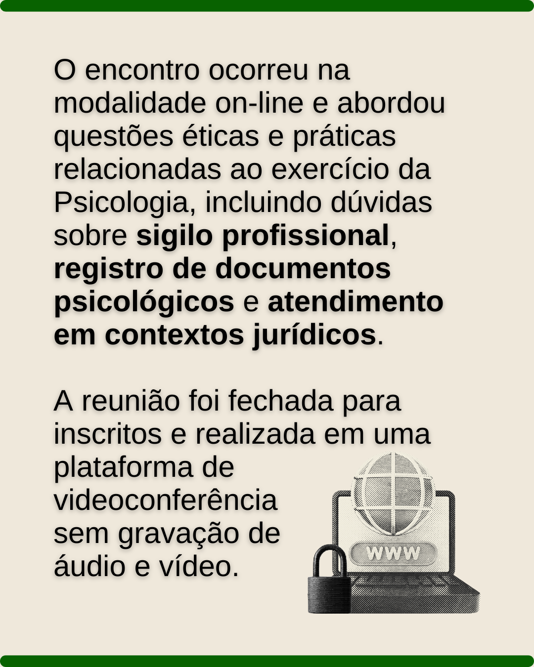Você conhece o projeto Plantão de Dúvidas, idealizado pela conselheira presidenta da COF, Glícia Feitoza, e realizado todo mês pela Comissão de Orientação e Fiscalização (COF) do CRP 01/DF? Confira o que rolou no nosso último encontro e se você tem dúvidas sobre práticas éticas na Psicologia ou se encontra numa situação de conflito, fique atento às próximas edições do nosso Plantão!