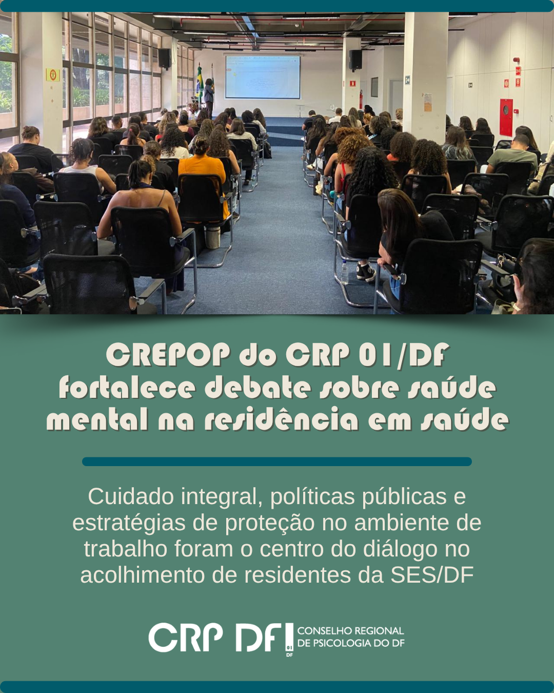 O CREPOP do CRP 01/DF realizou a palestra “Saúde Mental dos Residentes” durante o acolhimento de novas(os) residentes do Programa Saúde da Família e Comunidade da Secretaria de Saúde do DF (SES/DF), no dia 4 de março.