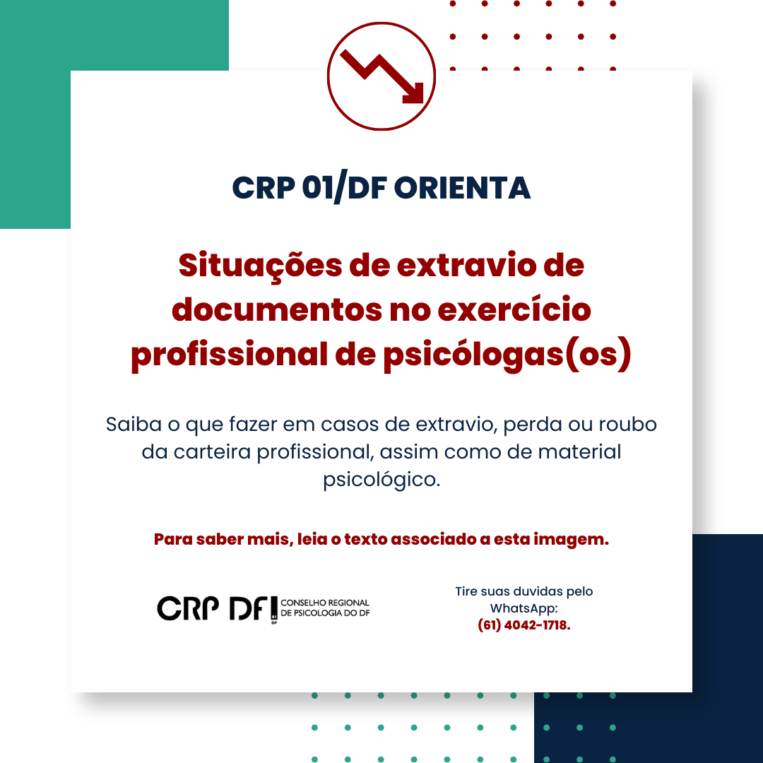 #DescreviParaVocê: além das informações textuais acima, a imagem colorida conta com a marca gráfica do CRP 01/DF e com a ilustração de uma seta estatística para baixo.